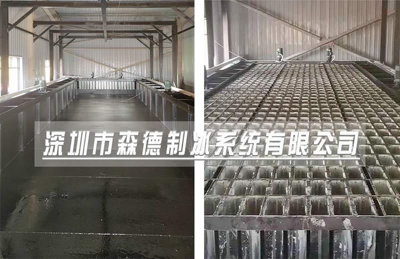 鹽水池塊冰機主要包括制冰池、制冰機組、蒸發(fā)器、冰桶組件、融冰池、倒冰架、加水裝置、航吊、冷庫等。